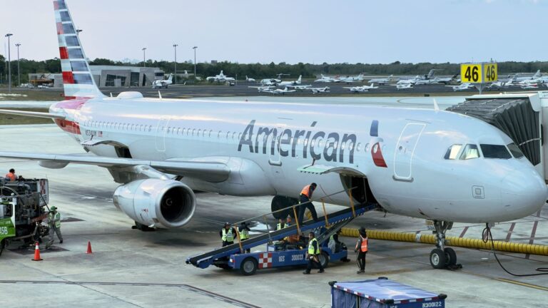 ఒక అమెరికన్ ఎయిర్లైన్స్ విమానం మే 26, 2023న కాంకున్ అంతర్జాతీయ విమానాశ్రయం వద్ద గేట్ వద్ద కూర్చుంది.