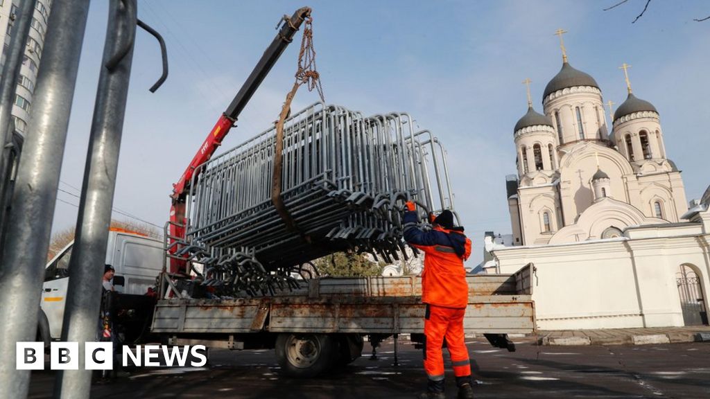 శుక్రవారం నవల్నీ స్మారక సేవ జరిగే చర్చి సమీపంలో కంచెలు తగ్గించబడ్డాయి.