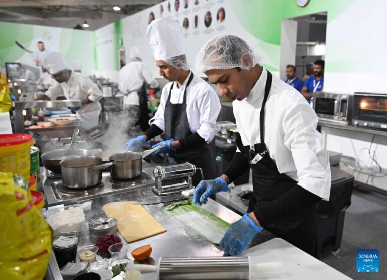 జనవరి 15, 2024న కువైట్‌లోని హవారీ గవర్నరేట్‌లో జరిగిన HORECA కువైట్ 2024 ఎగ్జిబిషన్‌లో వంటవాడు ఆహారాన్ని సిద్ధం చేస్తున్నాడు. ఆహార సేవలు మరియు పర్యాటక పరిశ్రమను ప్రోత్సహించడానికి కువైట్ సోమవారం ఇక్కడ HORECA కువైట్ 2024 ప్రదర్శనను ప్రారంభించింది. (ఫోటో అందించినది అసద్/జిన్హువా)