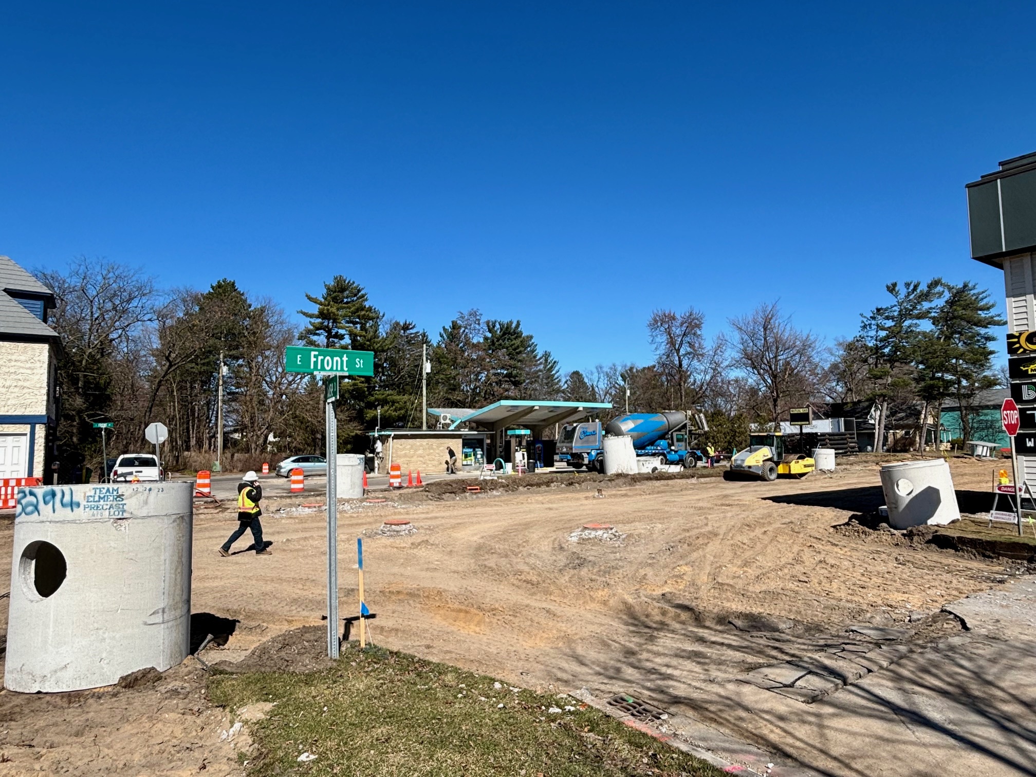 టీమ్ ఎల్మెర్స్ – $24.7 మిలియన్ల గ్రాండ్వ్యూ పార్క్వే/ఈస్ట్ ఫ్రంట్ స్ట్రీట్ పునర్నిర్మాణానికి నాయకత్వం వహించడానికి మిచిగాన్ డిపార్ట్మెంట్ ఆఫ్ ట్రాన్స్పోర్టేషన్ (MDOT) నియమించిన నిర్మాణ సంస్థ – మొదటి వారంలో కార్మికులతో కలిసి పని చేస్తుంది, ఇది రోజులో 24 గంటలు, 365 రోజులు ఆన్-సైట్లో ఉంటుంది. ఒక సంవత్సరం. సిబ్బంది ఈస్ట్ ఫ్రంట్ స్ట్రీట్లోని సెగ్మెంట్ 1లో గార్ఫీల్డ్ అవెన్యూ మరియు గ్రాండ్వ్యూ పార్క్వే మధ్య మరియు గార్ఫీల్డ్ ఉత్తరం నుండి పెనిన్సులా డ్రైవ్ వరకు పని చేస్తున్నారు. సిబ్బంది తాత్కాలిక ట్రాఫిక్ నియంత్రణ చర్యలను అమలు చేశారు, పరికరాలను సమీకరించారు మరియు తారు ఉపరితలం, అంతర్లీన కాంక్రీట్ పేవ్మెంట్ మరియు కాలిబాటలను తొలగించారు. “మా బృందం కూల్చివేతను పూర్తి చేయడానికి మరియు భద్రతా షోరింగ్ యొక్క ఇన్స్టాలేషన్ను ప్రారంభించడానికి గడియారం చుట్టూ అద్భుతంగా పనిచేసింది” అని టీమ్ ఎల్మర్ ప్రాజెక్ట్ మేనేజర్ నిక్ బ్రాడ్ చెప్పారు.