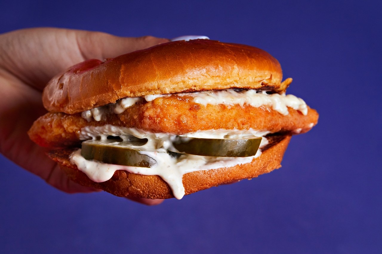 పొపాయ్ యొక్క క్లాసిక్ ఫ్లౌండర్ ఫిష్ శాండ్విచ్ లూసియానా మూలికలు మరియు సుగంధ ద్రవ్యాలతో మెరినేట్ చేయబడిన ప్రీమియం ఫ్లౌండర్ను కలిగి ఉంది. బారెల్-వయస్సు ఊరగాయలు మరియు టార్టార్ సాస్తో బ్రియోచీ బన్పై వడ్డిస్తారు. మేరీల్యాండ్లోని పోటోమాక్లో ఫిబ్రవరి 26, 2024న ఫోటో తీయబడింది. (ది వాషింగ్టన్ పోస్ట్ యొక్క డెబ్ లిండ్సే జెట్టి ద్వారా చిత్రం).