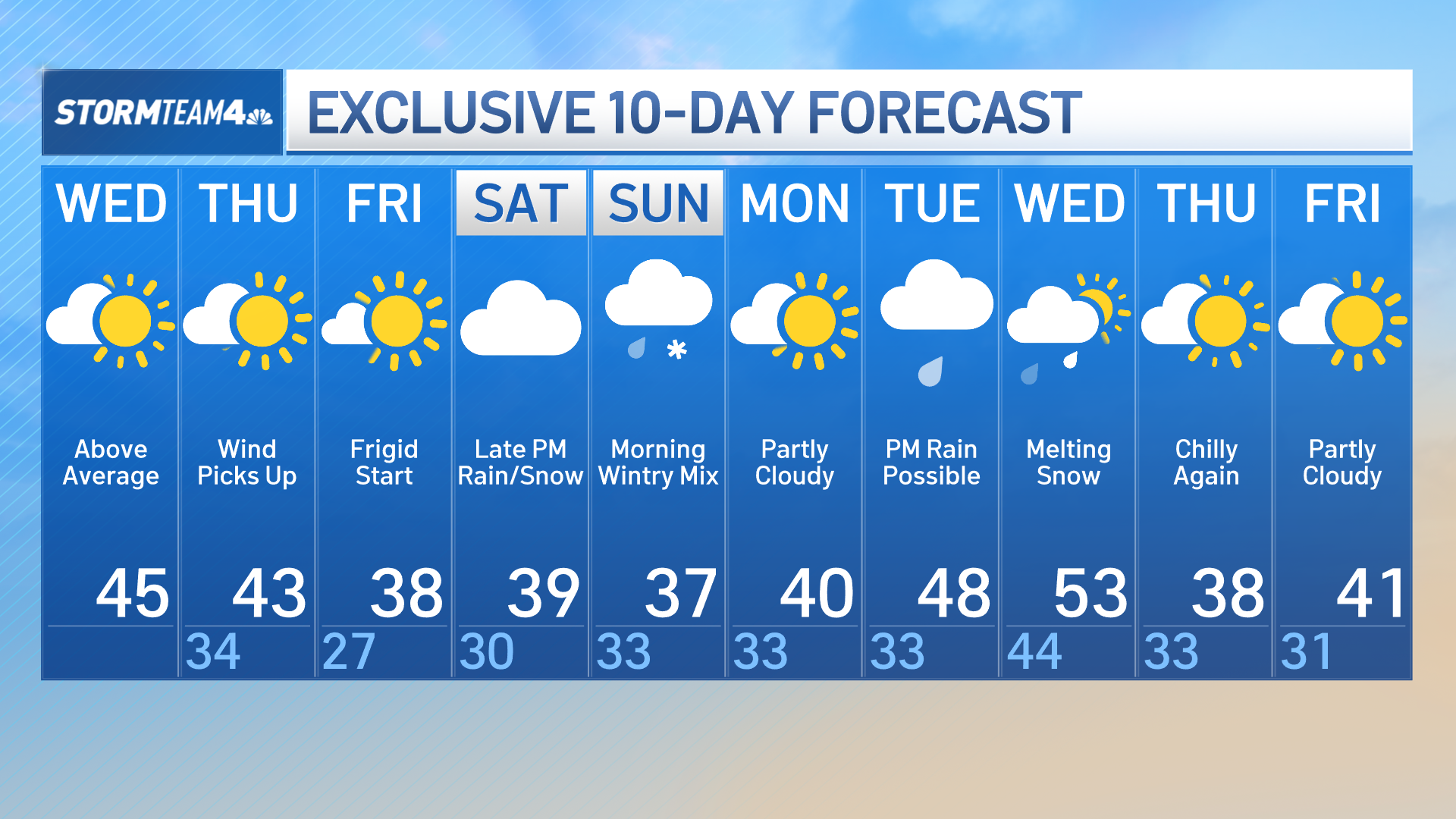 మేము ఈ వారాంతంలో తదుపరి మోడల్ ఒప్పందం కోసం ఎదురు చూస్తున్నాము, అయితే మిగిలిన వారంలో ఎండగా ఉన్నప్పటికీ చల్లగా ఉంటుంది. బుధవారం కంటే గురువారం కొంచెం చల్లగా ఉంటుంది, ఇది సగటు కంటే ఎక్కువగా ఉంటుంది మరియు శుక్రవారం శీతల వాతావరణం ప్రారంభం అవుతుంది.