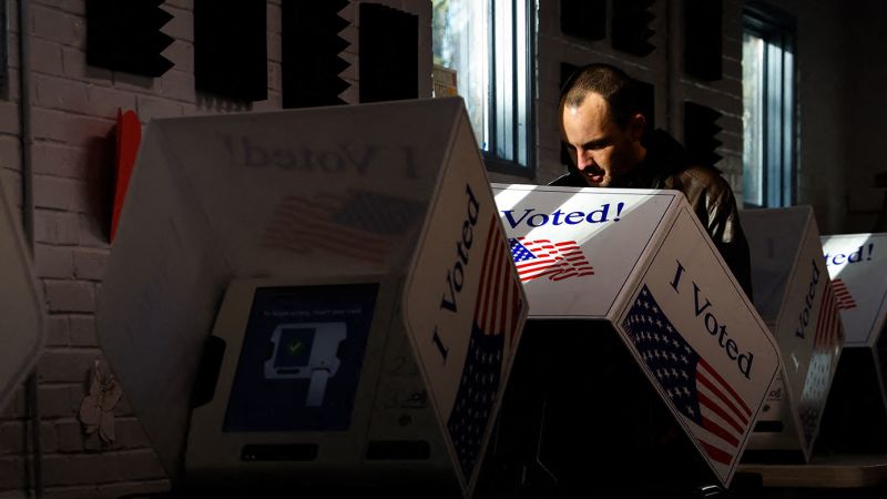 ఫిబ్రవరి 24, 2024న సౌత్ కరోలినాలోని చార్లెస్టన్లోని WL స్టీవెన్స్ ఆక్వాటిక్ సెంటర్లో ఒక వ్యక్తి ఓటు వేశారు.