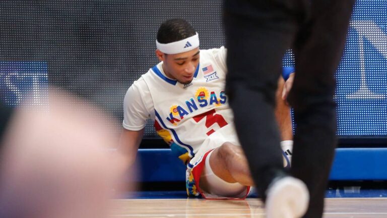 “I don’t know anything about Juan, but I cant imagine Kevin being a lot better on Monday if he can hardly move on Saturday,” Self said. “We’ll see. I don’t know about Juan. They said he got it pretty good but he’s a pretty tough kid, so we’ll see if he can come back.”