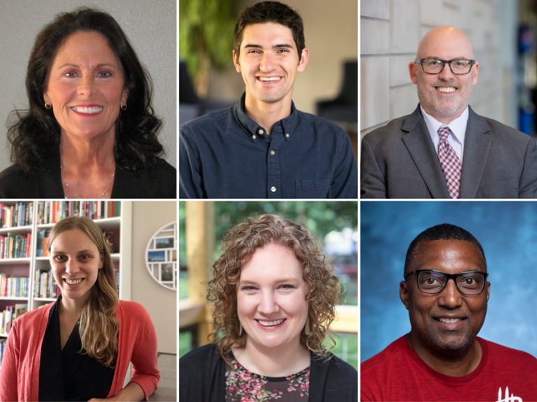 2024 డిపార్ట్మెంటల్ అలుమ్ని అవార్డు గ్రహీతలు, ఎగువ నుండి ఎడమ నుండి కాలన్ బి. బార్నెట్, మైఖేల్ ట్యాపీ మరియు మైఖేల్ ఎమ్. కాసెట్. దిగువ: ఎలిస్ స్వాన్సన్, హీథర్ డి. హంటర్, కీత్ ఎ. జోన్స్.