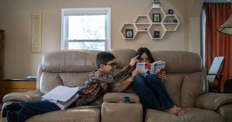 జాక్ మరియు మరియానా గాంపెరో ఇంట్లో తమ పాఠశాల పనిపై పని చేస్తున్నారు. ఈ జంటను వారి తల్లి డార్సీ గంపెరో ఇంటిలో చదివించారు. “వారు పాఠశాలలో కొంచెం విసుగు చెంది ఉన్నందున వారు హోమోస్కూల్ చేయాలనుకున్నారు” అని గాంపెట్రో చెప్పారు. “వారు కోరుకున్నది చేయడానికి స్వేచ్ఛగా ఉండటానికి ఇష్టపడతారు.” ఈ రోజున, జాక్వెస్ లూయిస్ బ్రెయిలీ గురించి ఒక వ్యాసంలో పని చేస్తున్నాడు మరియు మరియానా రష్యన్ భాషను రెండవ భాషగా చదువుతోంది.
