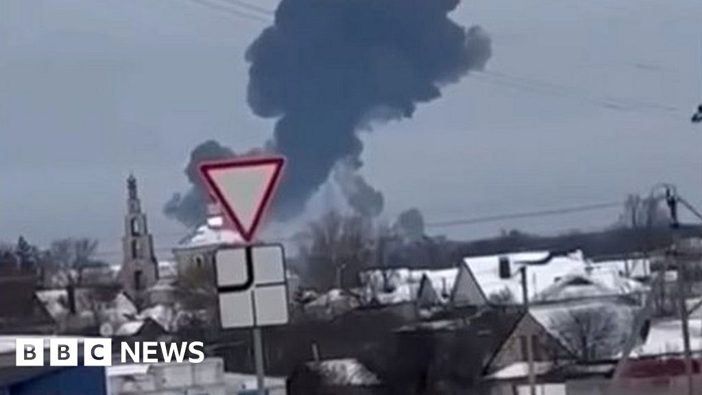 బెల్గోరోడ్ ప్రాంతంలో రష్యా విమానం కూలిపోయిన క్షణాన్ని చూపించే ఈ వీడియోను BBC సమీక్షించింది.