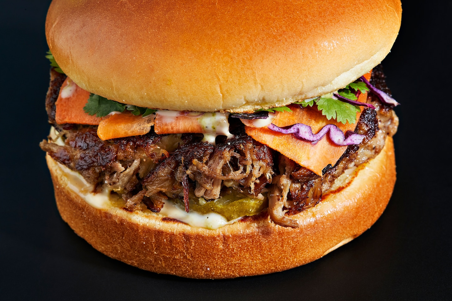 నెమ్మదిగా వండిన ఈ పోర్క్ బెల్లీ శాండ్విచ్లో ఆసియా ప్రభావాన్ని అనుభూతి చెందండి. మాంసాన్ని 24 గంటలు మెరినేట్ చేసి నిమ్మరసం, అల్లం, నిమ్మరసం, దాల్చినచెక్క మరియు కాఫీతో రుచికోసం చేస్తారు. పంది మాంసాన్ని నెమ్మదిగా కాల్చి, తురిమిన మరియు బంగాళాదుంప రొట్టెలో ఊరగాయ సలాడ్ (మీరు క్యారెట్ యొక్క స్వీట్ రిబ్బన్లను సంతోషంగా తీసుకుంటారు), జీడిపప్పు ఆధారిత మయోన్నైస్, క్యాస్కరతో చేసిన గ్లేజ్ మరియు ఫలవంతమైన, పుల్లని టీతో వడ్డిస్తారు. నేను దానిని పోగు చేస్తాను. ఇది వేయించడానికి ముందు విస్మరించబడిన కాఫీ చెట్టు పొట్టు నుండి తయారు చేయబడింది. (ఉరియోలా కెచప్ కోసం క్యాస్కరా మీకు చింతపండు ఆకారపు ప్యాకర్ని కూడా ఇస్తుంది.)