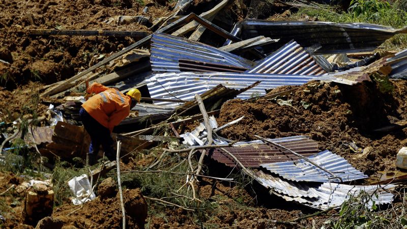 జనవరి 13, 2024న కొలంబియాలోని చోకోలోని క్విబ్డో మరియు మెడెలిన్ మధ్య రహదారిపై కొండచరియలు విరిగిపడటంలో చిక్కుకున్న వ్యక్తుల కోసం రెస్క్యూ టీమ్ సభ్యులు వెతుకుతున్నారు.