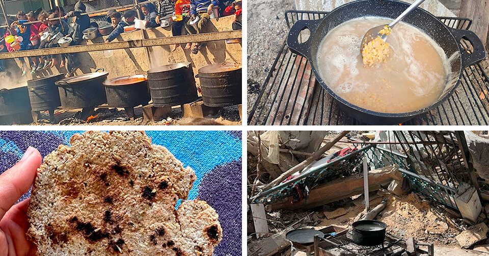 రఫా పిల్లలు తమ కుటుంబాలకు ఇంటి ఆహారాన్ని తీసుకెళ్లడానికి ఇలాంటి ఛారిటీ కిచెన్‌లకు కుండలను తీసుకువెళతారు.