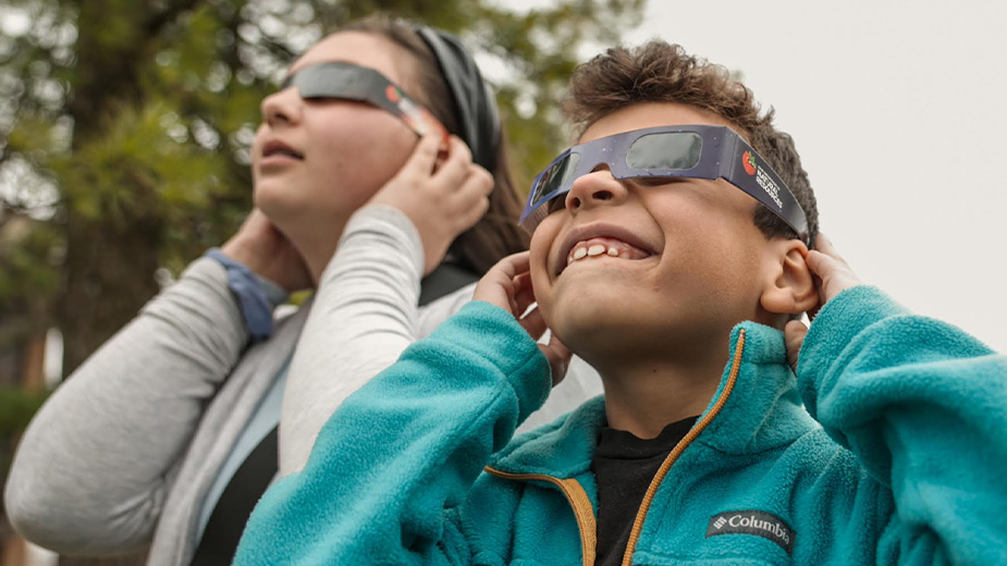 పై ఫోటో: పిల్లలు గ్రహణాన్ని చూసేందుకు భద్రతా అద్దాలు ధరిస్తున్నారు. (ఓహియో డిపార్ట్మెంట్ ఆఫ్ నేచురల్ రిసోర్సెస్)
