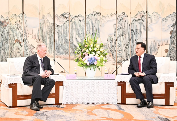చైనా కమ్యూనిస్ట్ పార్టీ యొక్క చాంగ్కింగ్ మున్సిపల్ కమిటీ కార్యదర్శి యువాన్ జియాజున్, మాస్కో స్టేట్ చైకోవ్స్కీ కన్జర్వేటరీ రెక్టర్ అలెగ్జాండర్ సోకోలోవ్ నేతృత్వంలోని ప్రతినిధి బృందంతో సమావేశమయ్యారు. (ఫోటో/చాంగ్కింగ్ సుసి విజువల్)