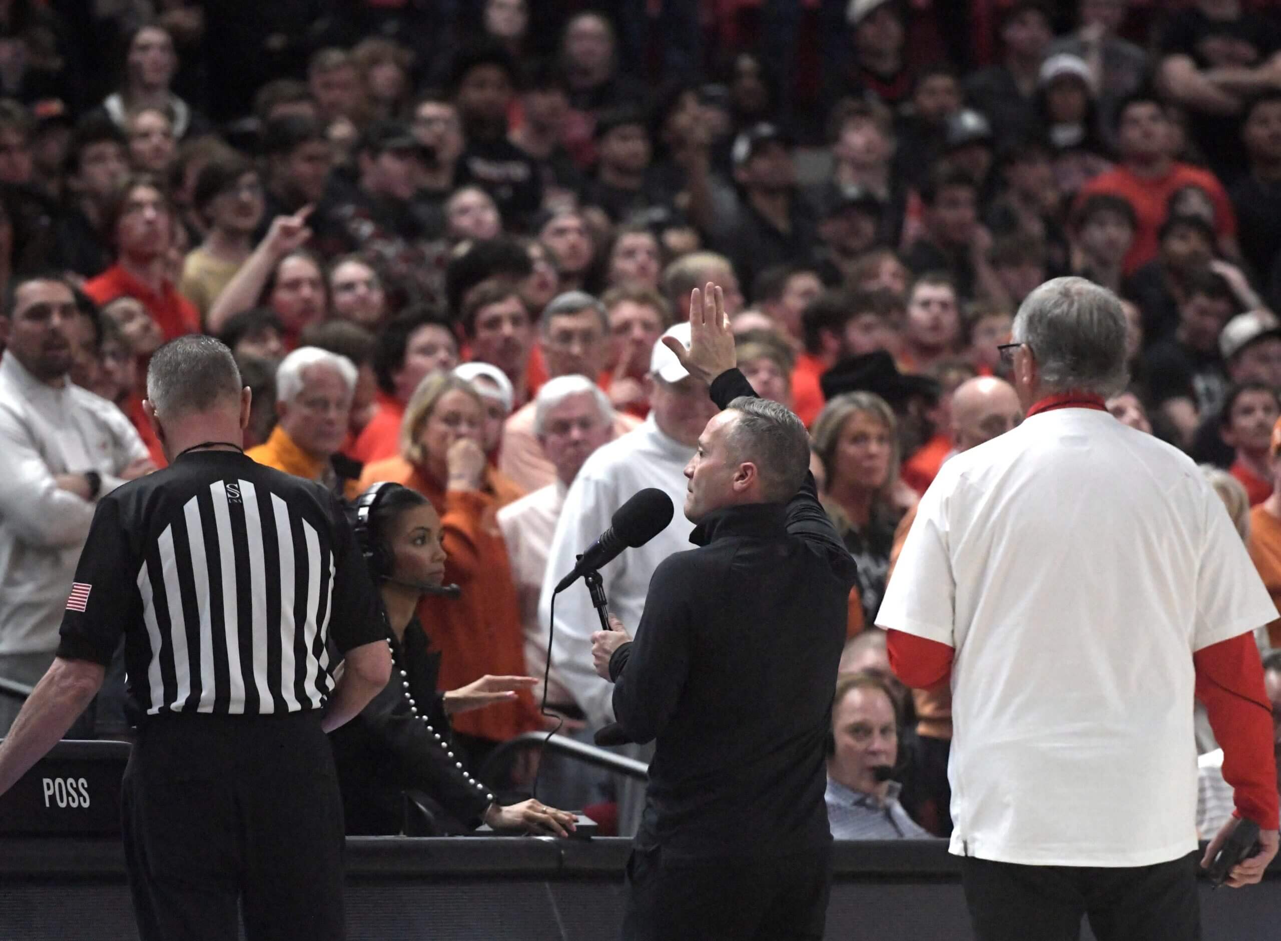 బయటకి దారి. బహుళ సాంకేతిక లోపాలు. ఓ అభిమాని కోర్టుపై చెత్తను విసిరాడు. టెక్సాస్ టెక్ కోచ్ గ్రాంట్ మెక్కాస్లాండ్ మైక్రోఫోన్పైకి వచ్చి వస్తువులను విసిరేయడం ఆపమని అభిమానులకు చెప్పాడు.