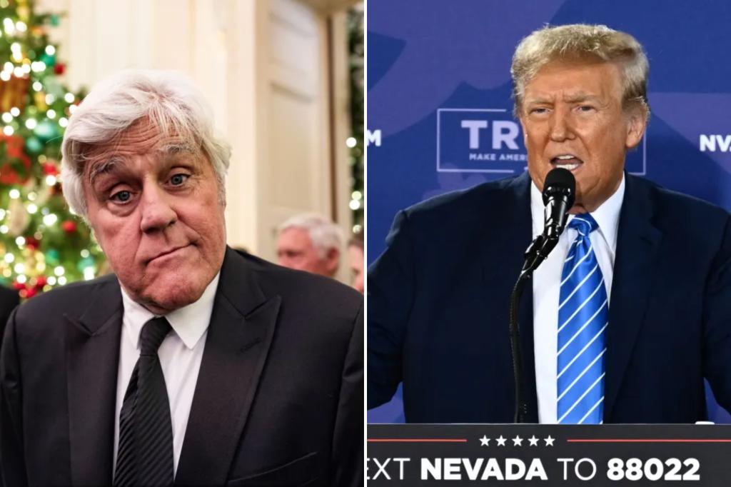 తాను డొనాల్డ్ ట్రంప్‌కి “అభిమానిని కాదు” అని జే లెనో చెప్పారు. జిమ్ రో స్కాల్జో/పూల్/EPA-EFE/Shutterstock