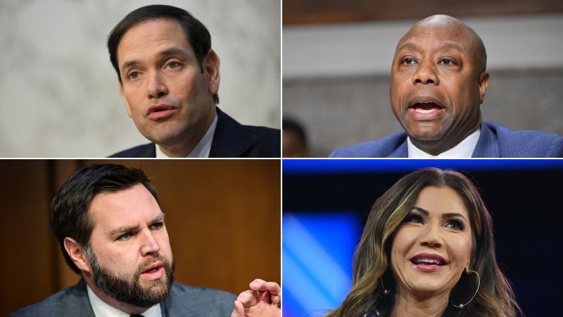 మరియు ఫ్లోరిడా సెనెటర్ మార్కో రూబియో, న్యూయార్క్ ప్రతినిధి ఎలిస్ స్టెఫానిక్, మాజీ ట్రంప్ క్యాబినెట్ సభ్యుడు బెన్ కార్సన్ మరియు మాజీ సౌత్ కరోలినా గవర్నర్ నిక్కీ హేలీ కూడా గత కొన్ని నెలలుగా ట్రంప్ ద్వారా ప్రస్తావించబడ్డారు. సుదీర్ఘ జాబితాలో చేర్చబడ్డారు.