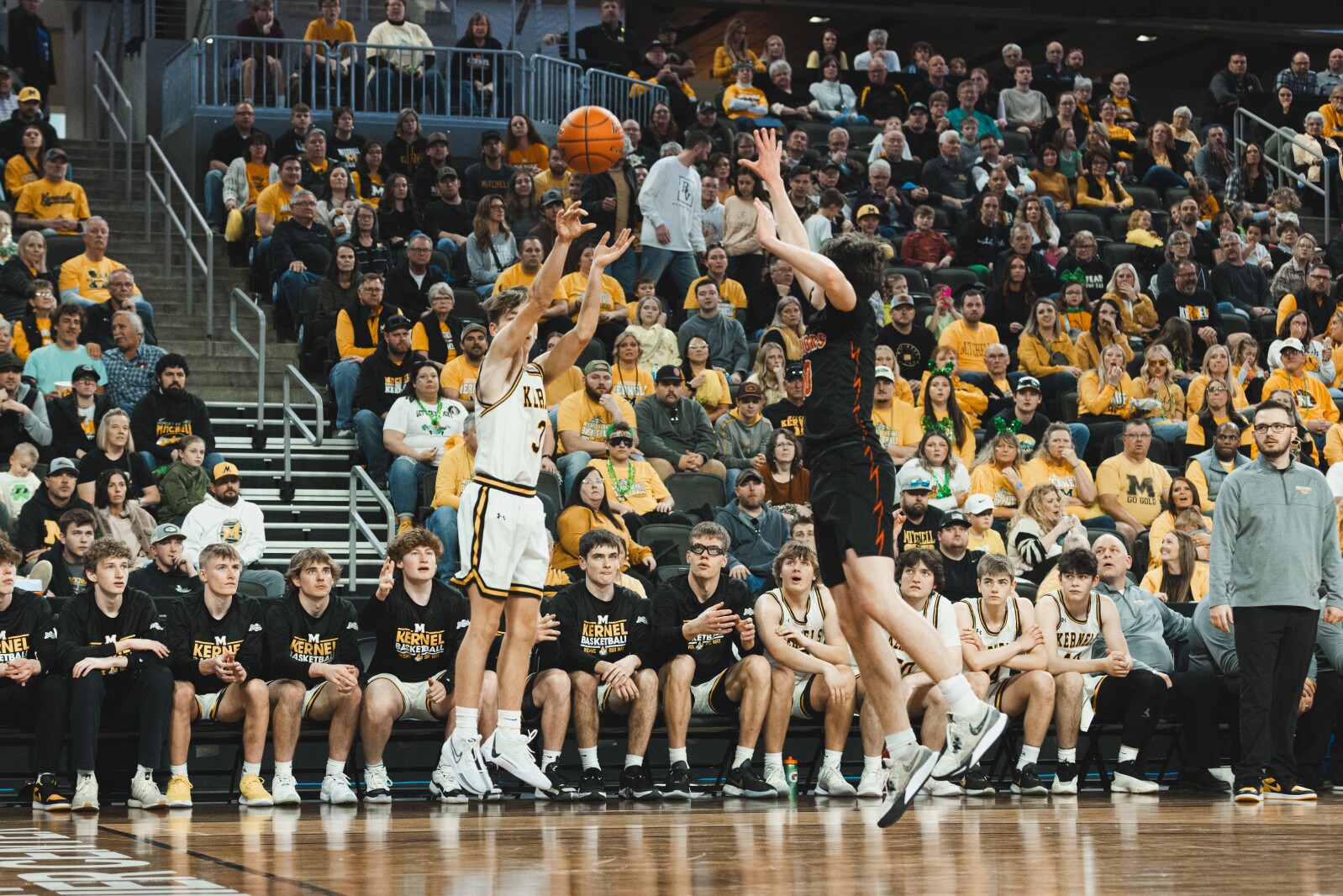 రాష్ట్ర టోర్నమెంట్లో రెండు గేమ్ల ద్వారా, మిచెల్ హై స్కూల్ బాలుర బాస్కెట్బాల్ జట్టు తన మొదటి ఇద్దరు ప్రత్యర్థులను కలిపి 29 పాయింట్లతో గెలుచుకుంది, ఇటీవల శుక్రవారం రాత్రి జరిగిన స్టేట్ సెమీఫైనల్స్లో సియోక్స్ ఫాల్స్ వాషింగ్టన్ను 72-51తో ఓడించింది.
