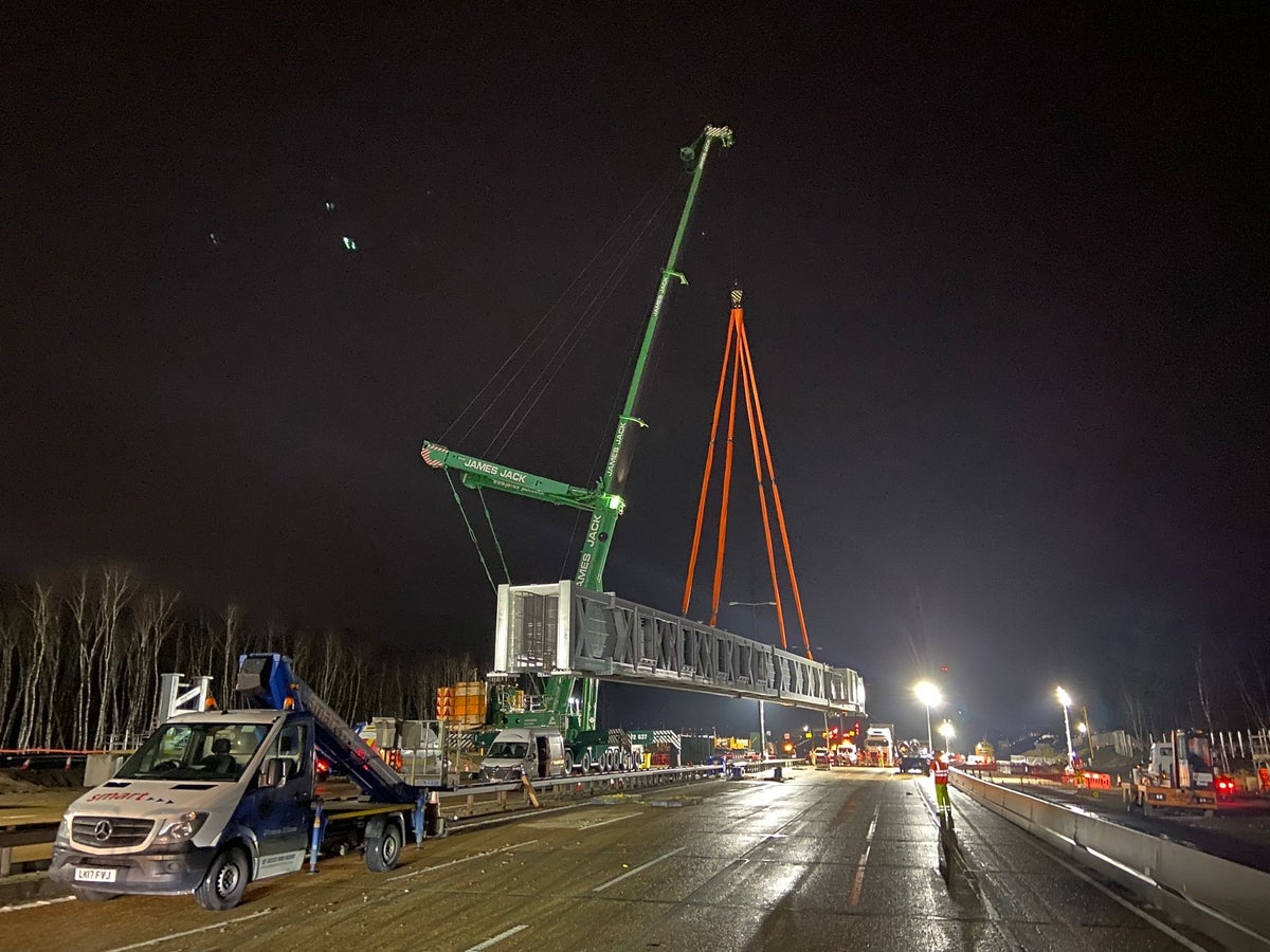 10 మరియు 11 జంక్షన్ల మధ్య ఐదు మైళ్ల విస్తీర్ణంలో ఉన్న మోటర్వే శుక్రవారం రాత్రి 9 గంటలకు రెండు వైపులా ట్రాఫిక్కు మూసివేయబడింది మరియు వంతెనను కూల్చివేసి కొత్త గ్యాంట్రీని ఏర్పాటు చేసినప్పుడు సోమవారం ఉదయం 6 గంటల వరకు ట్రాఫిక్కు మూసివేయబడుతుంది.