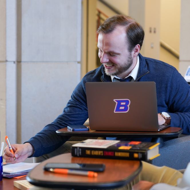 బోయిస్ స్టేట్ యూనివర్శిటీ యొక్క ఆన్లైన్ మాస్టర్ ఆఫ్ బిజినెస్ అడ్మినిస్ట్రేషన్ ఇన్ మార్కెటింగ్ లీడర్షిప్ కస్టమర్లు, ఉత్పత్తులు మరియు పరస్పర చర్యల గురించి డేటాతో నిండిన డిజిటల్ ప్రపంచంలో మీ సంస్థను నడిపించడానికి వ్యూహాత్మక మరియు విశ్లేషణాత్మక నైపుణ్యాలను అందిస్తుంది.