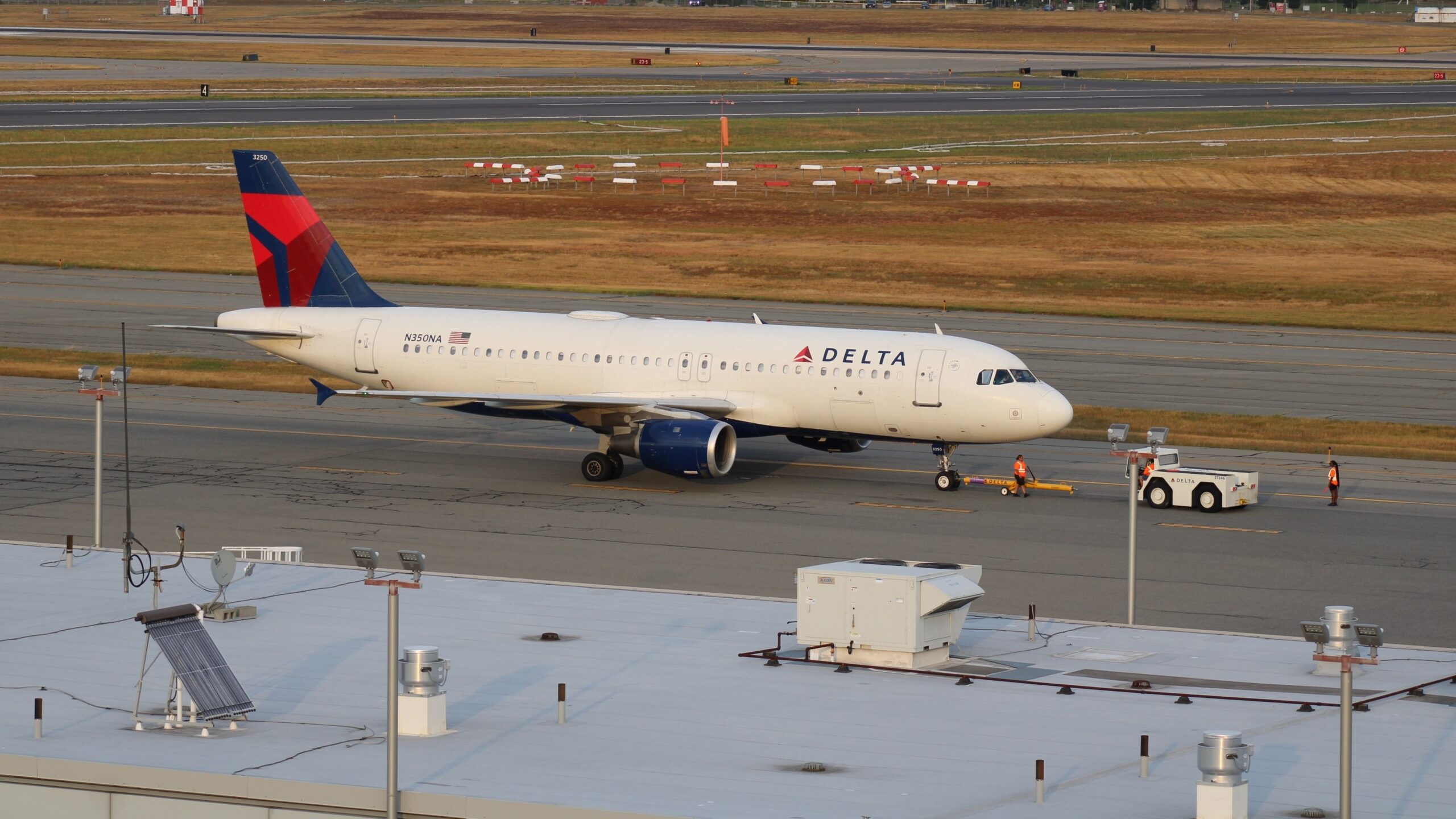 డెల్టా ఎయిర్ లైన్స్ ఎయిర్‌బస్ A319 లాస్ ఏంజిల్స్ ఇంటర్నేషనల్ ఎయిర్‌పోర్ట్‌లో వెనక్కి నెట్టింది.