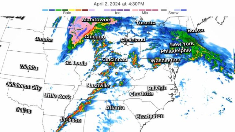 నేషనల్ వెదర్ సెంటర్ ప్రకారం, అలబామా నుండి దక్షిణ పెన్సిల్వేనియా వరకు విస్తరించి ఉన్న ఆగ్నేయ భాగాలలో సుడిగాలులు మరియు పెద్ద వడగళ్ళు వంటి తీవ్రమైన తుఫానులు వచ్చే ప్రమాదం 5/5 స్థాయిలో ఉంది. ఈ ప్రాంతంలో నాష్విల్లే, బర్మింగ్హామ్, నాక్స్విల్లే మరియు హంట్స్విల్లే నగరాలు ఉన్నాయి.
