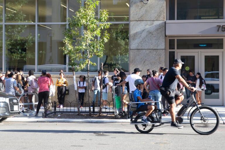 వలస వచ్చిన పిల్లలు మాన్హట్టన్లోని గ్రీన్విచ్ విలేజ్లోని MS 297లో వారి మొదటి రోజు పాఠశాలకు హాజరవుతారు.
