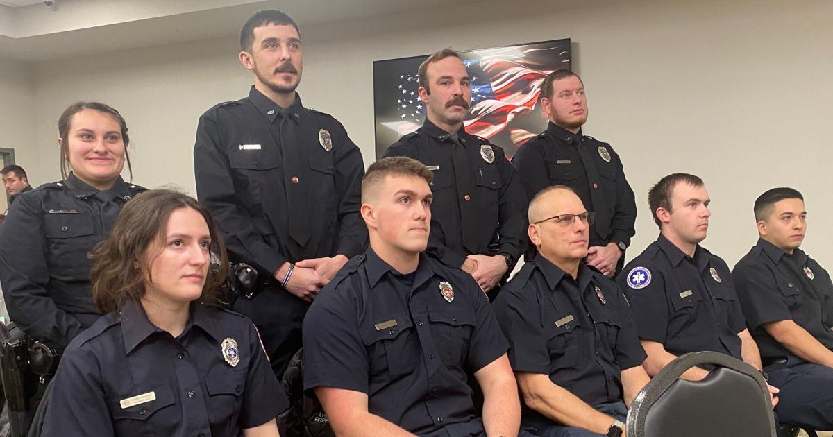 శుక్రవారం ఉదయం సిటీ పోప్ ప్రసంగంలో గ్రాండ్ ఐలాండ్ పోలీస్ మరియు ఫైర్ డిపార్ట్మెంట్ల కొత్త సభ్యులు సెల్యూట్ చేశారు.