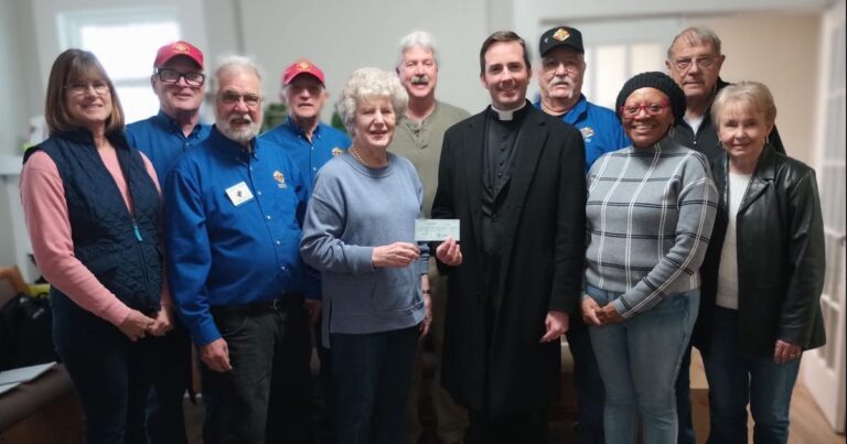 నైట్స్ ఆఫ్ కొలంబస్ మరియు సెయింట్ ఎడ్వర్డ్ కాథలిక్ చర్చి మంగళవారం హెండర్సన్ కౌంటీ ఫుడ్ ప్యాంట్రీకి $2,000 చెక్కును అందించాయి. కోడి విందుతో సహా ఆర్డర్ ద్వారా ఛారిటీ మరియు నిధుల సేకరణ ప్రయత్నాల ద్వారా నిధులు సేకరించబడ్డాయి మరియు సెయింట్ ఎడ్వర్డ్ పారిష్వాసుల నుండి వచ్చిన విరాళాలు.