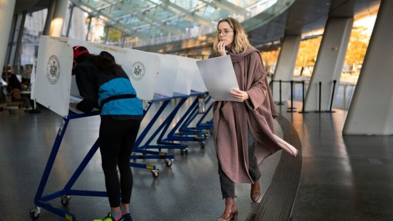 న్యూయార్క్ నగర ఓటర్లు నవంబర్ 8, 2022న బ్రూక్లిన్‌లోని పోలింగ్ స్థలంలో సమావేశమవుతారు.
