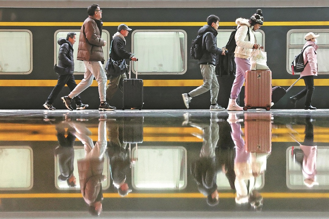 జియాంగ్సు ప్రావిన్స్లోని నాన్జింగ్లోని రైలు స్టేషన్లో మంగళవారం ప్రయాణికులు గుమిగూడారు. 40 రోజుల చైనీస్ న్యూ ఇయర్ ప్రయాణ రద్దీ మంగళవారంతో ముగిసింది, ఈ కాలంలో 8.4 బిలియన్లకు పైగా ప్రయాణీకుల ప్రయాణాలు జరిగాయి.యాంగ్ బో/చైనా న్యూస్ సర్వీస్
