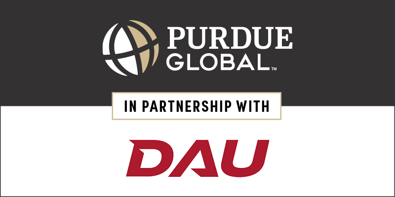 పర్డ్యూ గ్లోబల్, పని చేసే పెద్దల కోసం పర్డ్యూ యొక్క ఆన్లైన్ విశ్వవిద్యాలయం మరియు డిపార్ట్మెంట్ ఆఫ్ డిఫెన్స్ యొక్క ప్రధాన టాలెంట్ అక్విజిషన్ వర్క్ఫోర్స్ ఎడ్యుకేషన్ అండ్ ట్రైనింగ్ ఏజెన్సీ అయిన DAU మధ్య సహకారం ద్వారా, రెండు సంస్థలు డిపార్ట్మెంట్ ఆఫ్ డిఫెన్స్ యొక్క ప్రతిభను సంపాదించే వర్క్ఫోర్స్ను ప్రపంచవ్యాప్తంగా కనెక్ట్ చేయగలవు. సేవలను అందించడానికి మరియు స్థానిక అవసరాలకు ప్రతిస్పందించడానికి అవకాశం. .