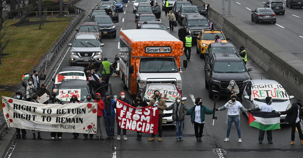 పోర్ట్ అథారిటీ పోలీస్ డిపార్ట్‌మెంట్ ప్రకారం, 20 మందికి పైగా పాలస్తీనియన్ అనుకూల నిరసనకారులను బుధవారం ఉదయం న్యూయార్క్ నగరంలోని కెన్నెడీ ఇంటర్నేషనల్ ఎయిర్‌పోర్ట్‌లోకి వెళ్లే ట్రాఫిక్‌ను అడ్డుకున్న తర్వాత అరెస్టు చేశారు.