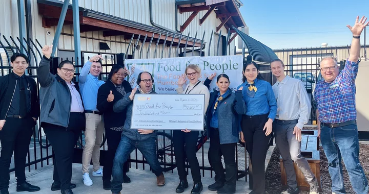 మెక్డొనాల్డ్స్ గోల్డెన్ గ్రాంట్స్ ప్రోగ్రాం నుండి ప్రతినిధులు శుక్రవారం ఉదయం లాభాపేక్ష రహిత సంస్థ యొక్క 14వ వీధి వేదిక వెలుపల ఫుడ్ ఫర్ పీపుల్ స్టాఫ్లో చేరారు. పిల్లల కోసం ఫుడ్ ఫర్ పీపుల్స్ బ్యాక్ప్యాక్ ప్రోగ్రామ్కు మద్దతుగా $10,000 చెక్కును అందించారు.