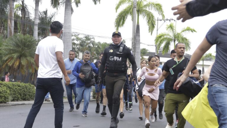 గ్వాయాక్విల్, ఈక్వెడార్ (AP) – ముసుగు ధరించిన పురుషులు పబ్లిక్ టెలివిజన్ ఛానెల్ సెట్పై దాడి చేశారు ఈక్వెడార్లో మంగళవారం ప్రత్యక్ష ప్రసారంలో తుపాకులు మరియు పేలుడు పదార్థాలను బ్రాండింగ్ చేయడం. అధ్యక్షుడు అని ప్రకటిస్తూ ప్రభుత్వం ఆర్డినెన్స్ జారీ చేసింది. హింస ప్రబలుతున్న దేశం మేము “అంతర్గత సాయుధ పోరాటంలో ప్రవేశించాము.