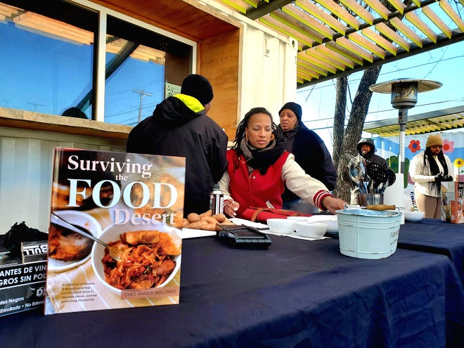 డల్లాస్ చెఫ్ అంబర్ జనవరి 20, 2024న దక్షిణ డల్లాస్‌లోని జోప్పాలోని జోపీ మామాస్ ఫామ్‌లో డల్లాస్ ఆరవ తరగతి చదువుతున్న మాడిసన్ లవ్, 11కి సాటెడ్ బచ్చలికూరతో క్యాబేజీ ర్యాప్‌ను అందించారు.・మిస్టర్ విలియమ్స్.  జనవరి 20, 2024న, డల్లాస్‌కు దక్షిణంగా ఉన్న జోప్పాలోని జోపీ మామాస్ ఫామ్‌లో, ఫారమ్‌ను సందర్శించిన డల్లాస్ శివారు ప్రాంతాలకు చెందిన యువకుల బృందంలో లవ్ కూడా ఉన్నారు. అమెరికన్ యువ నాయకత్వ సంస్థ జాక్ అండ్ జిల్ ద్వారా. డౌన్‌టౌన్ డల్లాస్‌కు దక్షిణంగా 11 మైళ్ల దూరంలో ఉన్న జోప్పా అనే ఫ్రీడ్‌మెన్స్ టౌన్, ఫెడరల్ డిక్లేర్డ్ ఫుడ్ ఎడారి, అనేక మైళ్ల దూరంలో సమీపంలోని కిరాణా దుకాణం ఉంది. విలియమ్స్ ఇటీవల ఒక వంట పుస్తకాన్ని ప్రచురించారు, "ఆహార ఎడారి నుండి జీవించడానికి," ఇది ఆహార ఎడారులలో నివసించే లేదా ఆహార ప్యాంట్రీలపై ఆధారపడే కుటుంబాలను లక్ష్యంగా చేసుకుంటుంది, ఇది విలియమ్స్ స్వయంగా అనుభవించింది.
