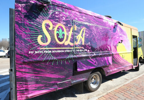 డోనా ప్రైస్ / అమెరికన్ ప్రెస్ “బోర్బన్ స్ట్రీట్ నుండి బీచ్ వరకు పో-బాయ్స్”ని కలిగి ఉంది, SOLA ఫుడ్ ట్రక్ దాని వెలుపలి భాగంలో మార్డి గ్రాస్-రంగు ఊదా, ఆకుపచ్చ మరియు బంగారు మూలాంశాన్ని కలిగి ఉంది.