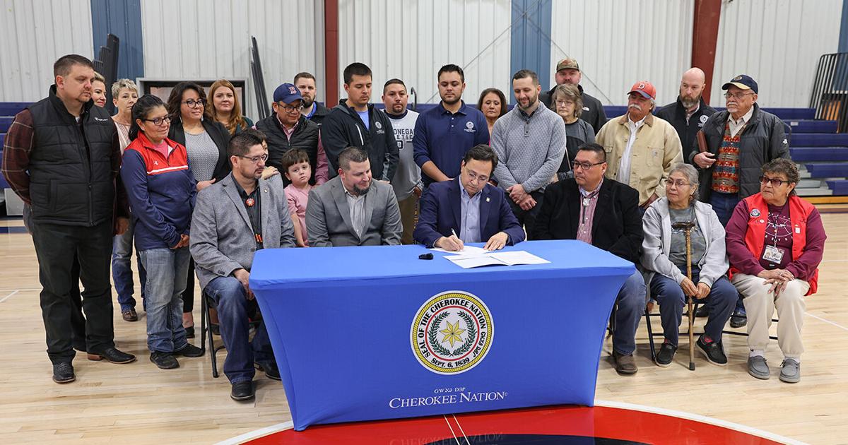 స్టిల్వెల్ – చెరోకీ నేషన్ నాయకులు మరియు డహ్లోనెగా పబ్లిక్ స్కూల్ల ప్రతినిధులు శుక్రవారం, జనవరి 26న సమావేశమయ్యారు, ఇది పాఠశాలను విస్తరించడానికి మరియు రాబోయే తరాలకు మరిన్ని విద్యా అవసరాలను తీర్చడానికి అనుమతించే భూమి లీజు గురించి మాట్లాడటానికి. ఒప్పందంపై సంతకం చేసిన సందర్భంగా జరుపుకున్నారు.