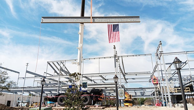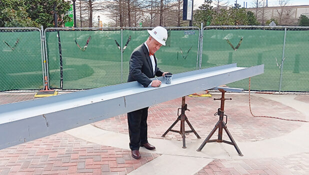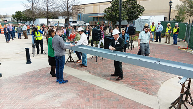 తదుపరి దశ నిర్మాణాన్ని జరుపుకోవడానికి అధికారులు కమ్యూనిటీ స్టీల్ బీమ్ సంతకం మరియు పూర్తి వేడుక కోసం తిరిగి వచ్చారు.