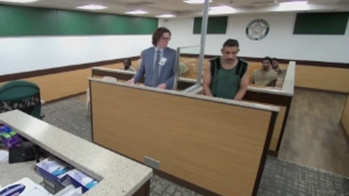 జీన్ కార్లోస్ అపోంటే, 40, ప్రస్తుతం రెండు ఆరోపణలపై బెయిల్ లేకుండా నిర్బంధించబడ్డాడు మరియు న్యాయమూర్తి అతన్ని మానసిక ఆరోగ్య మూల్యాంకనం చేయడానికి అనుమతించారు, కోర్టు వీడియో చూపిస్తుంది.