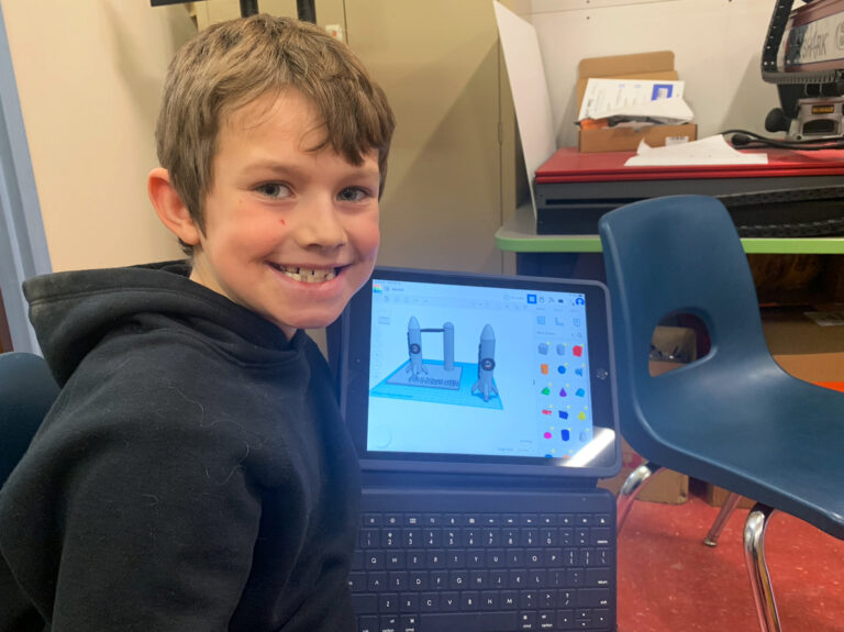టెన్నాంట్స్ హార్బర్‌లోని సెయింట్ జార్జ్ స్కూల్‌లో ఇటీవల ఉదయం, 9 ఏళ్ల గిల్బర్ట్ బోయిన్టన్ రాకెట్‌లు, స్టోర్‌లు మరియు నేమ్ ట్యాగ్‌లతో సహా 3D ప్రింటింగ్ యాప్‌ని ఉపయోగించి తాను రూపొందించిన డిజైన్‌లను ప్రదర్శించాడు.