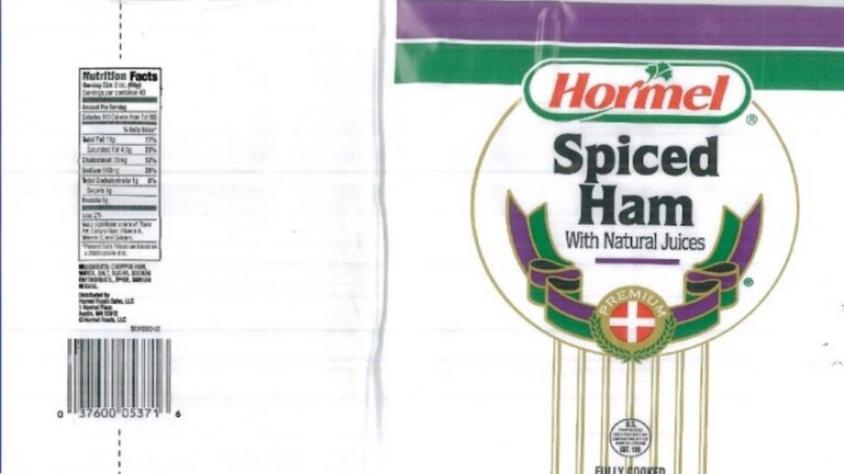 U.S. డిపార్ట్‌మెంట్ ఆఫ్ అగ్రికల్చర్ ఫుడ్ సేఫ్టీ అండ్ ఇన్‌స్పెక్షన్ సర్వీస్ శుక్రవారం విడుదల చేసిన వార్తా ప్రకటన ప్రకారం, ఆస్టిన్, మిన్.లో ఉన్న హార్మెల్, హామ్‌లో పాలు ఉండవచ్చు. ఉత్పత్తి లేబుల్‌పై తెలిసిన అలెర్జీ కారకాలు ఏవీ జాబితా చేయబడలేదు.