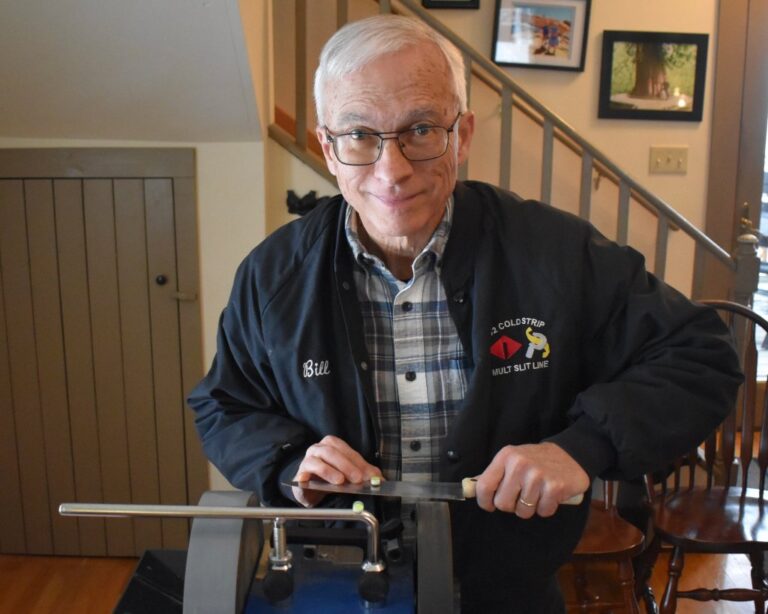 నేపర్‌విల్లేలోని షార్పెనింగ్ సర్వీస్ యజమాని అయిన బిల్ స్టార్మ్‌కు బ్లేడ్ అంచున ఉన్న ప్రతిబింబాన్ని చూసినప్పుడు దానిని పదును పెట్టాల్సిన అవసరం ఉందని తెలుసు. (స్టీవ్ మెచ్/నేపర్‌విల్లే సన్)