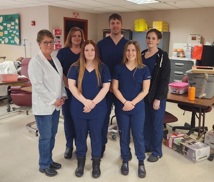 మెక్సికో యొక్క రీజియన్ 9 స్కూల్ ఆఫ్ అప్లైడ్ టెక్నాలజీ నుండి ఐదుగురు విద్యార్థులు మంగళవారం రాత్రి పాఠశాల యొక్క సర్టిఫైడ్ నర్సింగ్ అసిస్టెంట్ ప్రోగ్రామ్ నుండి పట్టభద్రులయ్యారు. ఎడమ నుండి ముందు: బోధకుడు జాకీ కిల్బ్రెత్, నమోదిత నర్సు మరియు విద్యార్థులు ఎరిన్ లైటన్, లూకాస్ బెలెన్సౌ మరియు అలిసన్. వెనుక వరుస, విద్యార్థులు రాచెల్ మిచెల్ మరియు జెస్సికా థెరియోల్ట్. ఫోటో పోస్ట్ చేసింది