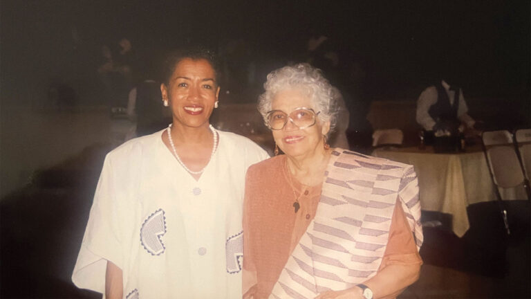 1999లో ఆఫ్రికన్ ట్రావెల్ అసోసియేషన్ యొక్క 24వ అంతర్జాతీయ కాన్ఫరెన్స్ సందర్భంగా ఘనాలోని అక్రాలో ఫ్రెడ్డీ “క్వీన్ మదర్ ఆఫ్ ట్రావెల్ అండ్ టూర్స్”గా “ప్రతిష్ఠించబడినప్పుడు” ఫ్రెడ్డీ హెండర్సన్ మరియు అతని కుమార్తె గేనెల్.మూలం: గేనెల్ హెండర్సన్