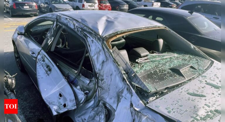 న్యూఢిల్లీ: ఎ బోయింగ్ 777 జెట్ విమానంలో 249 మంది ప్రయాణించారు. అత్యవసర ల్యాండింగ్ గురువారం పార్కింగ్ స్థలంలో చక్రం పడి అనేక కార్లు దెబ్బతిన్నాయి.