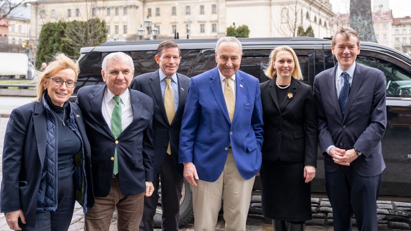 మరో నలుగురు డెమొక్రాటిక్ సెనేటర్లు, రోడ్ ఐలాండ్కు చెందిన జాక్ రీడ్, కొలరాడోకు చెందిన మైఖేల్ బెన్నెట్, కనెక్టికట్కు చెందిన రిచర్డ్ బ్లూమెంటల్ మరియు న్యూ హాంప్షైర్కు చెందిన మాగీ హసన్, రష్యా దండయాత్ర రెండవ వార్షికోత్సవాన్ని పురస్కరించుకుని, కాంగ్రెస్ ప్రతినిధి బృందంలో భాగంగా మిస్టర్ షుమెర్తో కలిసి ప్రయాణించారు. . అధ్యక్ష భవనం నుండి ఒక ప్రకటన ప్రకారం, అతను ఉక్రెయిన్ అధ్యక్షుడు వోలోడిమిర్ జెలెన్స్కీతో సమావేశమయ్యాడు.
