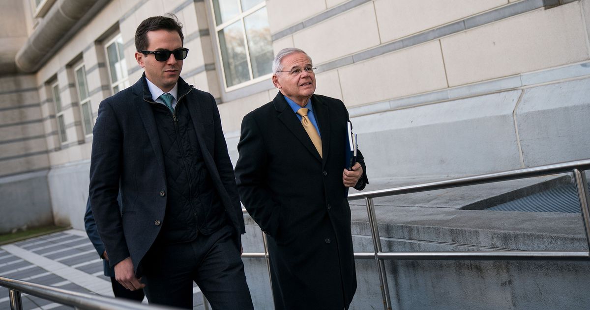 బాబ్ మెనెండెజ్ తన కుమారుడు రాబ్తో కలిసి న్యూజెర్సీలోని ఫెడరల్ కోర్టుకు గత సంవత్సరం హాజరయ్యారు.