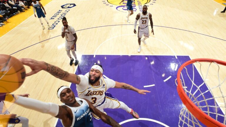 లాస్ ఏంజిల్స్ — ఆంథోనీ డేవిస్ చారిత్రాత్మక ప్రదర్శనను కనబరిచాడు — అతని 27 పాయింట్లు, 25 రీబౌండ్లు, ఏడు స్టీల్స్, ఐదు అసిస్ట్లు మరియు మూడు బ్లాక్లు లీగ్లో ఎప్పుడూ పునరావృతం కాలేదు — లాస్ ఏంజిల్స్ లేకర్స్ ఆదివారం మరో అగ్రశ్రేణి ప్రత్యర్థిని ఓడించి, ఓడించారు. మిన్నెసోటా టింబర్వోల్వ్స్ 120-109.