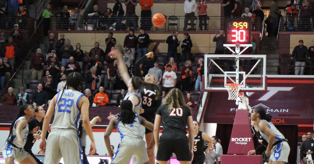 టిల్లీ వారి అన్ని ముఖ్యమైన ఆధిక్యాన్ని మూడు పాయింట్లకు (నాలుగు పాయింట్ల నుండి) పొడిగించారు, ప్రేక్షకులను మరోసారి గర్జించారు. Hokies (నేను లిజ్ గురించి మాట్లాడుతున్నాను) గేమ్లో 20 సెకన్లు మిగిలి ఉండగానే జార్జియా చివరిగా ఆర్క్ పై నుండి ఒక ట్రేని కొట్టే వరకు హోకీలను 1-3 పాయింట్ల బఫర్తో ముందుకు ఉంచగలిగారు. డ్యూక్ ముఖం. చివరి స్కోర్కు ఆధిక్యాన్ని అందించడానికి ఆమె స్ట్రిప్ నుండి రెండు షాట్లు కొట్టింది, అయితే మిగిలిన ఆటలో మరెవరూ బంతిని బకెట్లో ఉంచలేదు. డ్యూక్ యొక్క ఎయిర్బాల్ ప్రయత్నంలో టెక్ తుది స్వాధీనంని కొనసాగించింది మరియు చివరి సెకన్లు గడిచేకొద్దీ బంతి ఉత్తర ముగింపు రేఖకు సమీపంలో లిజ్ చేతుల్లోనే ఉంది.