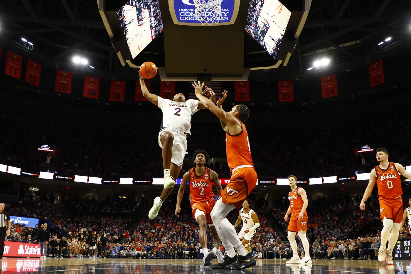 • సరే, లేదు. 6 ఫిబ్రవరి 4, 2023న, వర్జీనియా టెక్ కాసెల్ కొలీజియంలో 74-68తో కావలీర్స్ను ఓడించింది, వర్జీనియా విజయ పరంపరను ఏడు వద్ద ముగించింది.