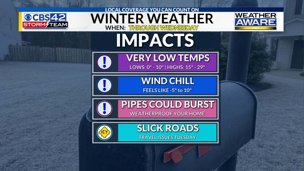 మంగళవారం ఉదయం: గడ్డకట్టే వర్షం మరియు స్లీట్ యొక్క మిశ్రమం ఉత్తర మరియు మధ్య అలబామాలో చాలా వరకు ప్రమాదకరమైన ప్రయాణ పరిస్థితులను సృష్టిస్తోంది, ఈ ఉదయం రోడ్లు మరియు వంతెనలపై జారే మచ్చలు ఉన్నాయి. మీరు ప్రయాణం చేయనవసరం లేకపోతే, రోడ్లకు దూరంగా ఉండండి. మీరు తప్పనిసరిగా ప్రయాణం చేస్తే, చాలా జాగ్రత్తగా ఉండండి మరియు నెమ్మదిగా కదలండి.